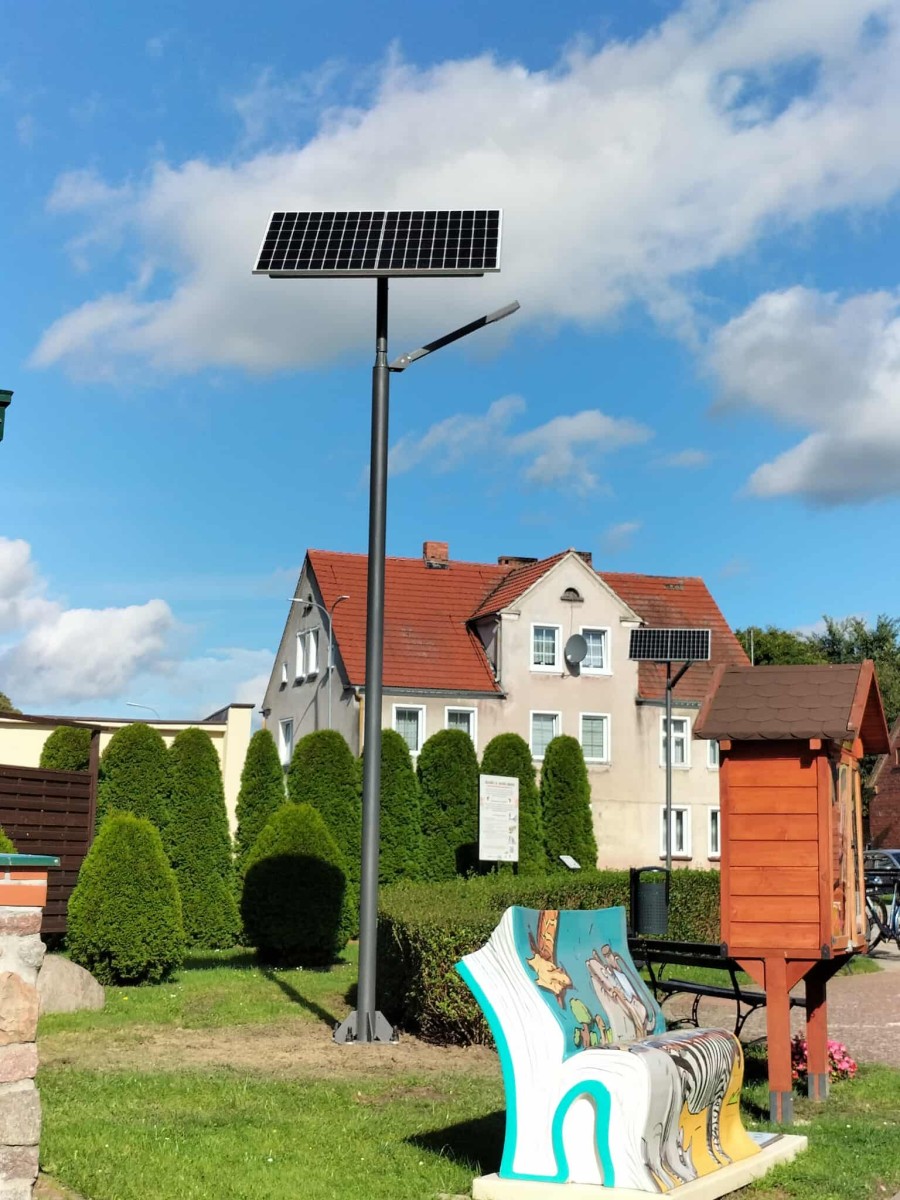Informacja o zrealizowanym projekcie "Zakup oraz montaż lamp solarnych wokół terenu Gminnego Ośrodka Kultury w Tychowie"