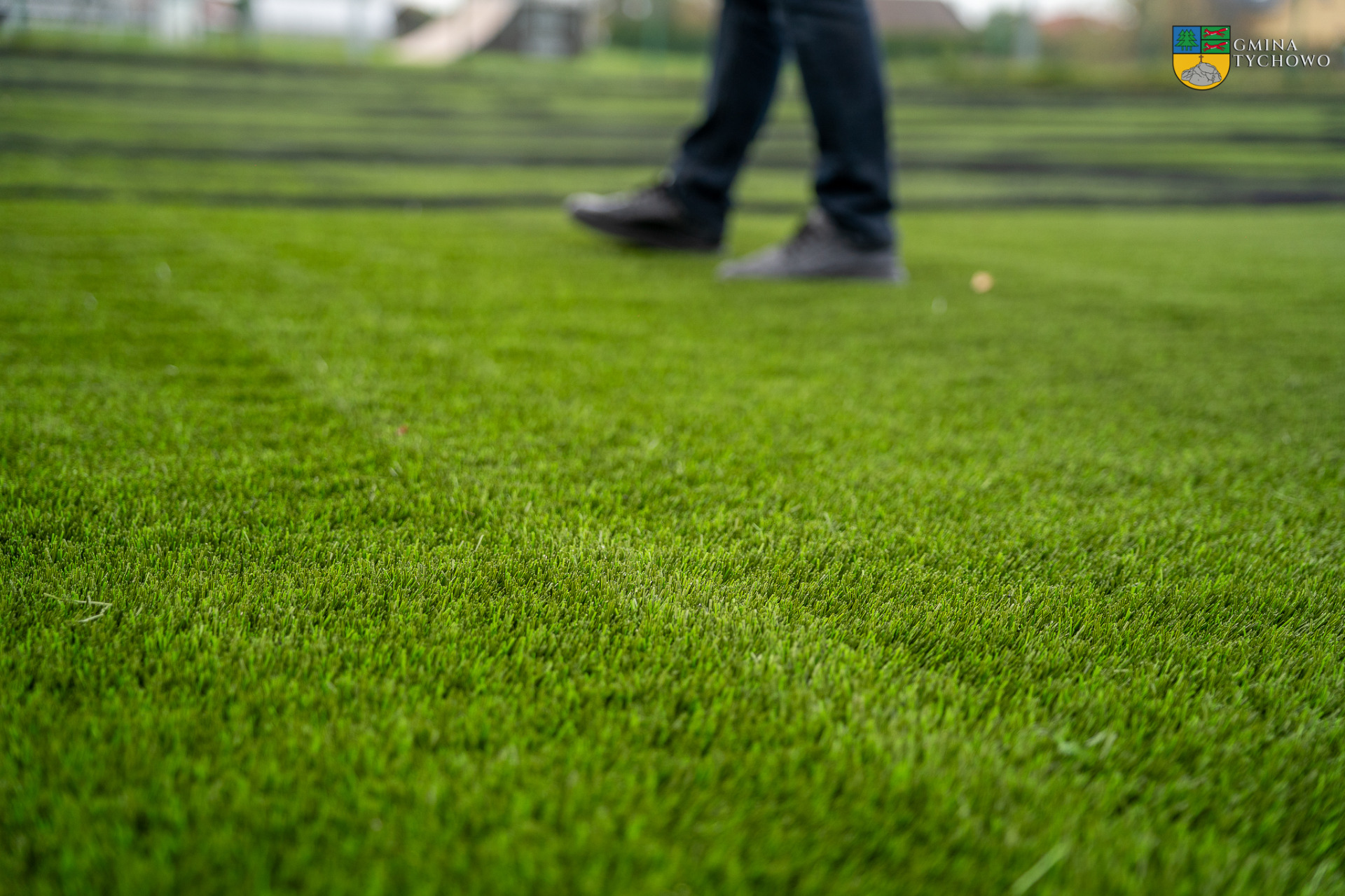 W ramach zadania wykonano wymianę nawierzchni ze sztucznej trawy na boisku do piłki nożnej, co znacząco poprawi komfort i bezpieczeństwo użytkowników.