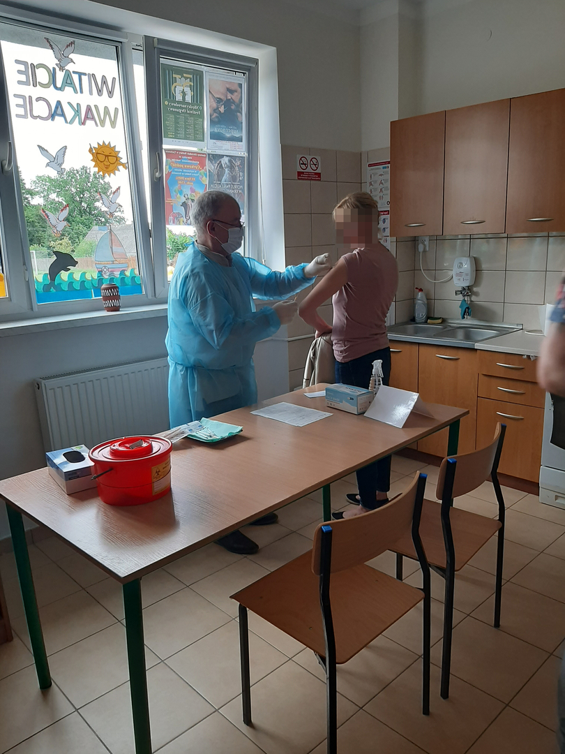 W dniu 21.07.2021r. na świetlicy wiejskiej w Kowalkach, w ramach NSP spisało się 14 osób i zaszczepiło się przeciw COVID-19 - 10 osób.