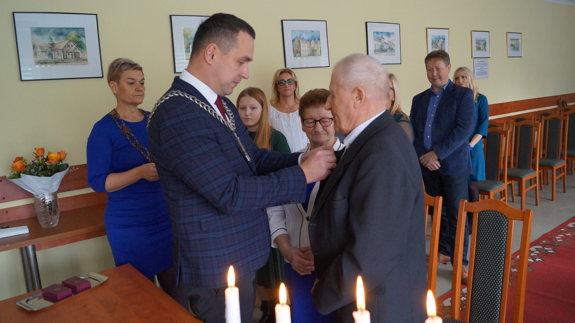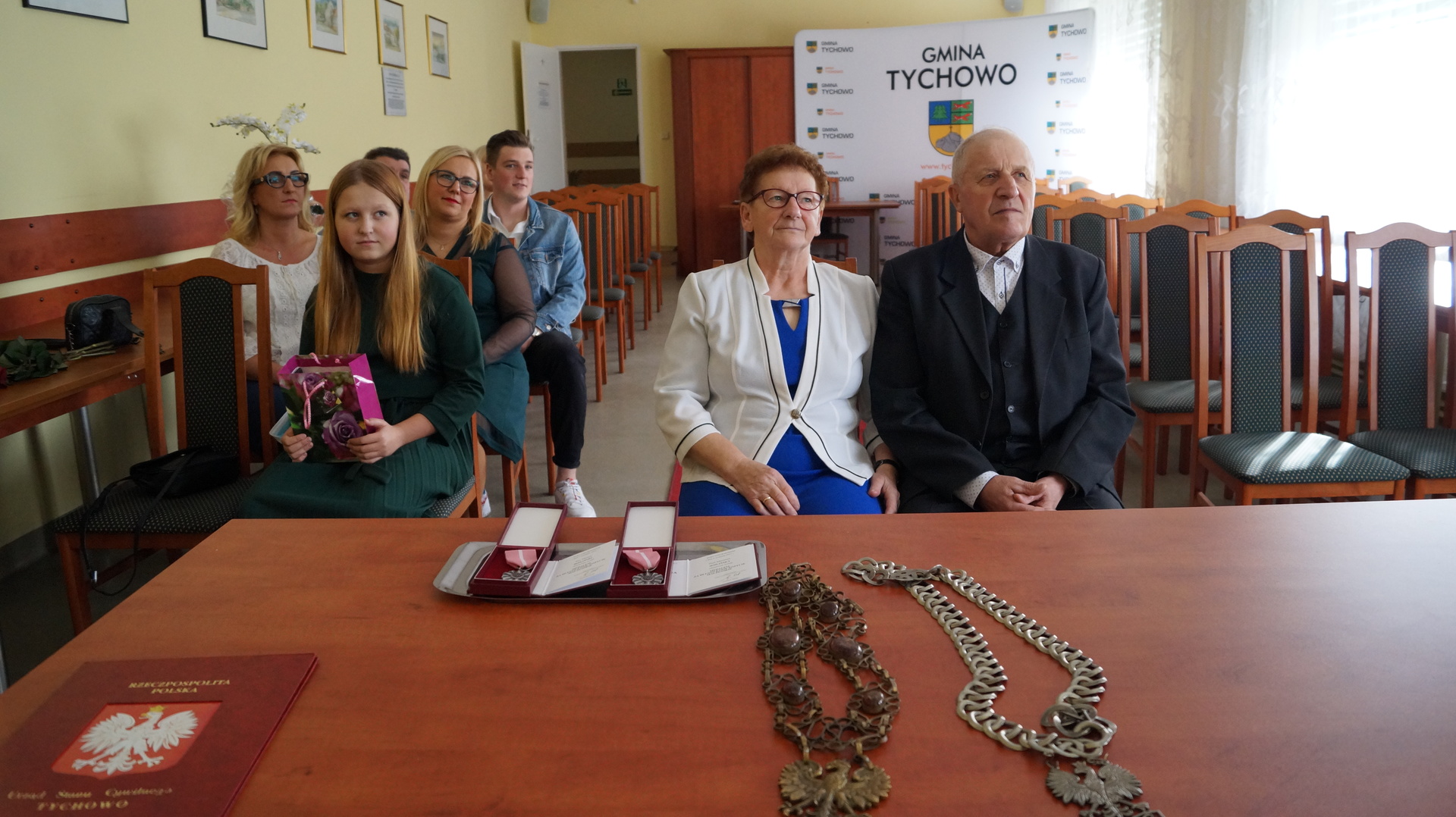 Z tej okazji, w środę 3 listopada br., w Urzędzie Miejskim w Tychowie burmistrz Robert Falana udekorował Dostojnych Jubilatów Medalami za Długoletnie Pożycie Małżeńskie przyznanymi przez Prezydenta RP. W tym wyjątkowym spotkaniu wzięli udział również: Przewodniczący Rady Miejskiej w Tychowie Paweł Kowalski, kierownik Urzędu Stanu Cywilnego Mariola Liksza oraz najbliższa rodzina Jubilatów.